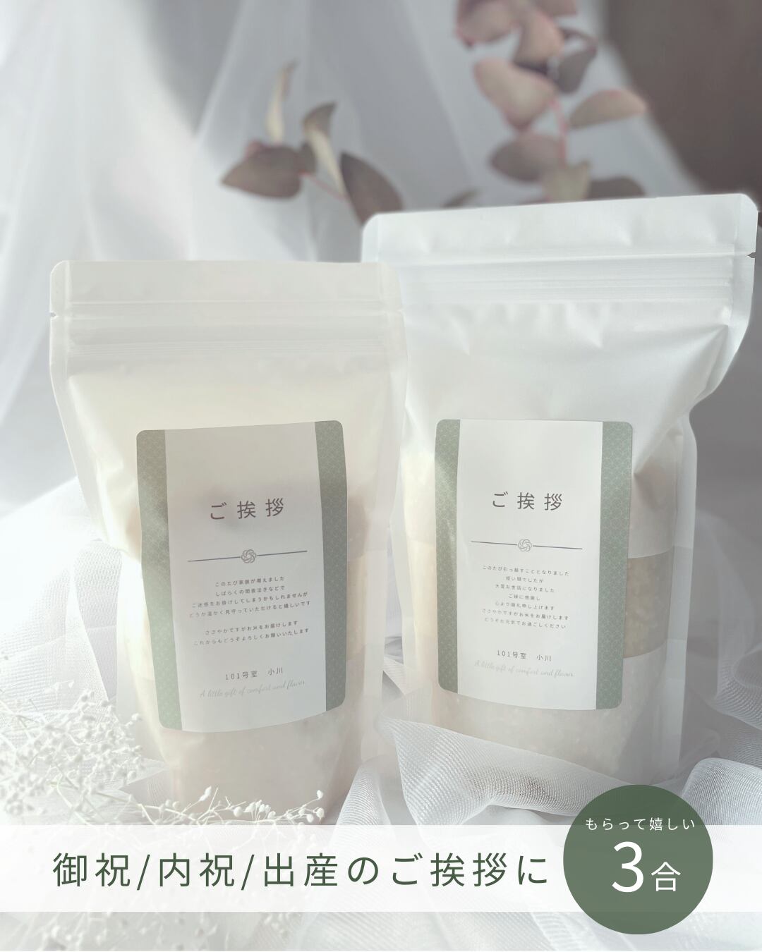 【ご挨拶米】選ぶだけメッセージ入り 3合×2個 BOXセット